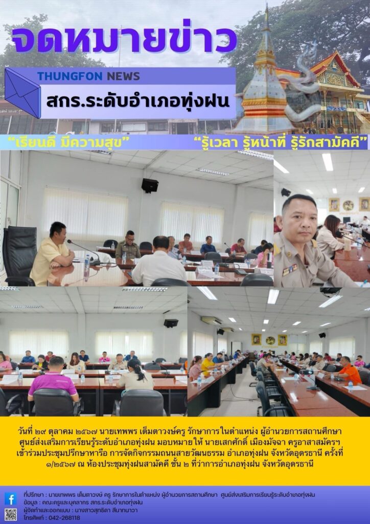 เข้าร่วมประชุมปรึกษาหารือ การจัดกิจกรรมถนนสายวัฒนธรรม อำเภอทุ่งฝน จังหวัดอุดรธานี ครั้งที่ ๑/๒๕๖๗ ณ ห้องประชุมทุ่งฝนสามัคคี ชั้น ๒ ที่ว่าการอำเภอทุ่งฝน จังหวัดอุดรธานี