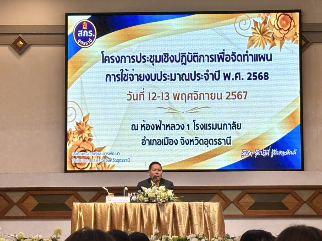 เข้าร่วมโครงการประชุมเชิงปฏิบัติการเพื่อจัดทำแผนการใช้จ่ายงบประมาณประจำปี พ.ศ. ๒๕๖๘ วันที่ ๑๒-๑๓พฤศจิกายน ๒๕๖๗ ณ ห้องฟ้าหลวง ๑โรงแรมนภาลัย อำเภอเมือง จังหวัดอุดรธานี